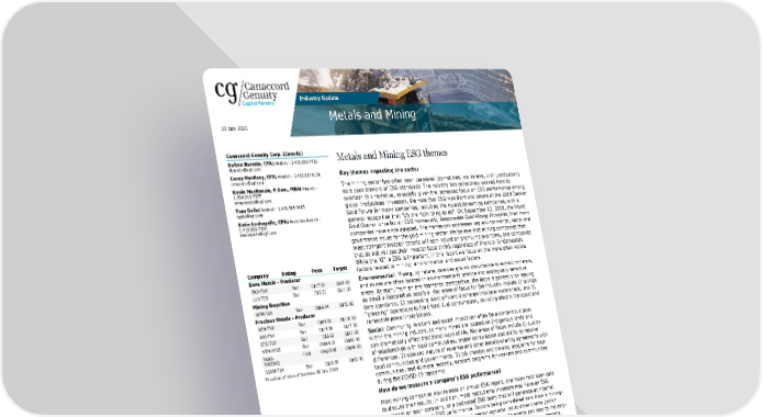 Industry Update Metals and Mining 22 July 2020 Canaccord Genuity Corp. (Canada) Metals and Mining ESG themes Dalton Baretto, CFA| Analyst - 1.416.869.7380 dbaretto@cgf.com Carey MacRury, CFA| Analyst - 1.416.867.6130 Key themes impacting the sector cmacrury@cgf.com The mining sector has often been perceived (sometimes, we believe, with justification) Kevin MacKenzie, P.Geo., MBA| Analyst - 1.604.643.7357 as a poor steward of ESG standards. The industry has collectively worked hard to kmackenzie@cgf.com overturn this narrative, especially given the increased focus on ESG performance among Tom Gallo| Analyst - 1.416.869.3483 global institutional investors. We note that ESG was front and centre at the 2019 Denver tgallo@cgf.com Gold Forum for many companies, including the royalty/streaming companies, with a Katie Lachapelle, CPA| Associate Analyst - general recognition that "it's the right thing to do". On September 12, 2019, the World 1.416.869.7294 klachapelle@cgf.com Gold Council unveiled an ESG framework, Responsible Gold Mining Principles, that many companies have since adopted. The framework addresses key environmental, social and governance issues for the gold mining sector. We believe that mining companies that meet stringent investor criteria will earn valuation premiums over time, and companies that do not will see their investor base shrink regardless of financial fundamentals. While the "G" in ESG is important, in this report we focus on the more often visible Company Rating Price Target factors related to mining: environmental and social factors. Base Metals - Producer Environmental: Mining, by nature, involves ground disturbance to extract minerals, ERO-TSX Buy C$17.23 C$22.00 and mines are often located in environmentally pristine and ecologically sensitive LUN-TSX Buy C$8.51 C$11.00 areas. As such, from an environmental perspective, the focus is generally on leaving Mining Royalties as small a footprint as possible. Key areas of focus for the industry include 1) tailings WPM-TSX Buy C$66.94 C$75.00 dam standards; 2) processing plant effluent discharge into local watersheds; and 3) Precious Metals - Producer "greening” operations to limit fossil fuel consumption, including electric transport and AEM-TSX Buy C$93.00 C$110.00 renewable power installations. AGI-TSX Buy C$14.56 C$17.50 BTO-TSX Buy C$8.63 C$11.00 Social: Community relations and social impact can often be a contentious topic NEM-NYSE Buy US$64.19 US$83.00 within the mining industry, as many mines are located on Indigenous lands and PAAS- Hold US$35.68 US$36.00 can dramatically affect traditional ways of life. Key areas of focus include 1) quality NASDAQ of relationships with local communities, proper consultation and ability to resolve SSRM-TSX Buy C$30.59 C$35.00 differences; 2) size and nature of revenue and other benefit-sharing agreements with Priced as of close of business 20 July 2020 local communities and governments; 3) job creation and training programs for local communities; and 4) more recently, support programs for workers and communities during the COVID-19 pandemic. How do we measure a company’s ESG performance? Most mining companies now release an annual ESG report, and many hold open calls to discuss their results. In addition, most institutional investors now have an ESG scorecard on each company, or a dedicated ESG team that will generate an internal view on the company’s ESG performance. Factors being considered vary from a mining- specific suite at some clients to a general sector-agnostic list at other clients (which tends to put mining at a disadvantage). In addition, specific events can lead to industry- wide movements; as an example, following VALE’s Brumadinho tailings dam tragedy, the Church of England led an institutional investor mandate requesting that major mining companies globally provide full disclosure on their tailings dam designs and risk- mitigation measures. Which companies are doing it best? Every mining company we cover is now making a significant effort to improve its ESG score, although we generally observe more focus on the ‘E’ and ‘S’ than on the ‘G’. Among the base metals companies we cover, our conversations with investors have indicated a preference for Lundin Mining and Ero Copper from an ESG perspective. Among the senior precious metals companies, Newmont, Agnico Eagle Mines, B2Gold, Pan American Silver, and Wheaton Precious Metals are perceived as ESG leaders. Among the mid-cap precious metals companies, we have observed a general preference for Alamos Gold and SSR Mining. Canaccord Genuity is the global capital markets group of Canaccord Genuity Group Inc. (CF : TSX) The recommendations and opinions expressed in this research report accurately reflect the research analyst's personal, independent and objective views about any and all the companies and securities that are the subject of this report discussed herein. 22 July 2020 9