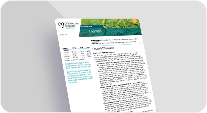 Industry Update Cannabis 22 July 2020 Matt Bottomley, CPA, CA, CBV | Analyst | Canaccord Genuity Corp. (Canada) | mbottomley@cgf.com | 1.416.867.2394 Derek Dley, CFA | Analyst | Canaccord Genuity Corp. (Canada) | ddley@cgf.com | 1.416.869.7270 Company Rating Price Target Cannabis Cannabis ESG themes CCHW-NEO Spec Buy C$3.73 C$13.00 CL-CSE Spec Buy C$6.70 C$11.50 Key themes impacting the sector CURA-CSE Spec Buy C$9.51 C$15.00 In a sector that is still in a very nascent stage of its growth curve, the cannabis GTII-CSE Spec Buy C$15.60 C$22.00 industry has experienced its fair share of opportunities and challenges. Although Priced as of close of business 20 July 2020 ESG considerations are typically not at the forefront of many of our discussions with investors, we believe a number of important themes are starting to emerge, including: Canaccord Genuity Corp. acted as financial advisor to Tryke Companies • Community relations and support of social/criminal justice reforms. Due to for its proposed sale to Cresco Labs. the historical disparity in the implementation of strict laws for cannabis possession/ distribution among different social/racial groups in the US, regulators are increasingly Canaccord Genuity Corp. acted as calling for reforms as markets become legalized. In addition to expunging criminal financial advisor to Grassroots and records, many markets have earmarked license grants to groups that have been provided a fairness opinion to the disproportionally impacted by this issue. As a result, a number of companies have Board of Directors of Grassroots in begun providing assistance and advisory services to members of groups that do not its proposed acquisition by Curaleaf have the financial resources or legal expertise common to most public companies, in Holdings Inc. order to ensure these groups are also able to participate in the benefits brought on by cannabis legalization. As maintaining a good relationship with regulators is critical to success in any market, we believe these moves to help rectify past injustices are mutually beneficial. • Public health & safety in adapting to COVID-19. The cannabis sector has experienced a unique dynamic in the current COVID-19 environment, with demand surging in virtually all legal markets. However, in the US, state governors and regulators are also calling for strict social distancing measures, which increases the complexity of distributing product to end-users. As a result, we believe companies that are best able to pivot to curbside pickup and home delivery models, and/or manage foot traffic logistics, will be best suited to mitigate business interruptions in a sector where maintaining and holding market share is highly competitive. • Corporate governance. With company founders and other insiders holding large ownership interests throughout the sector, the need for improved corporate governance and independent board representation continues to be a theme among cannabis operators. We believe this is partially a function of the nascent state of the industry; however, the sector has nonetheless seen a number of notable missteps (failed M&A, poor capital allocation) that have weighed on investor confidence. How do we measure company performance? Although it is difficult to precisely measure and quantify the above factors, we believe investors should look toward operators which have publicly disclosed social justice initiatives, longstanding/strong relationships with regulators in their core markets, the ability to maintain sales/market share while complying with COVID-19 protocols, and boards that increasingly add independent directors. Which companies are doing it best? Based on the above criteria, we highlight four US cannabis companies: (1) Columbia Care, which has announced a number of social equity partnerships (link) and houses a board where four of its six directors are independent; (2) Cresco Labs, which launched its Social Equity & Educational Development initiative (link), with four of its nine directors being independent; (3) Curaleaf, which has launched its Rooted in Good initiative, continues to print all-time high revenues despite COVID-19 overhangs, and has a board with three of its five directors being independent; and (4) Green Thumb Industries, which has implemented its Social Equity License Education Assistance Program (including pro bono mentoring - link), remains one of the most profitable MSO’s, and has a board in which three of seven are independent directors. Canaccord Genuity is the global capital markets group of Canaccord Genuity Group Inc. (CF : TSX) The recommendations and opinions expressed in this research report accurately reflect the research analyst's personal, independent and objective views about any and all the companies and securities that are the subject of this report discussed herein. 22 July 2020 3