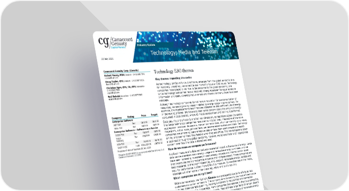 Industry Update Technology, Media and Telecom 22 July 2020 Canaccord Genuity Corp. (Canada) Technology ESG themes Robert Young, MBA| Analyst - 1.416.869.7341 ryoung@cgf.com Doug Taylor, CFA| Analyst - 1.416.867.6101 Key themes impacting the sector dtaylor@cgf.com As technology, particularly cloud software, emerges from the global pandemic thus Christian Sgro, CPA, CA, CFA| Associate - 1.416.869.7364 far relatively unscathed, we expect to see more of a focus on ESG issues. Technology csgro@cgf.com companies have played a key role in the response to the global pandemic, and Neil Bakshi| Associate - 1.416.867.2366 while technology companies have a relatively strong reputation for equal access to nbakshi@cgf.com information and tools, diversity/inclusiveness and the environment, there have been missteps. Although technology companies do not have a reputation for overconsumption of resources, we see a growing concern related to energy usage in some corners. For example, the cryptocurrency boom focused attention on the inefficient use of energy Company Rating Price Target in the mining process. We have also seen some concern about the amount of energy Enterprise Software consumed in data centres, where AI model development and training is performed. ABT-TSX Buy C$15.43 C$13.50 Data security and privacy is another key dimension, as regulators assess the control REAL-TSX Buy C$29.03 C$25.00 that large technology companies have over our digital lives, irrespective of the value Enterprise Software - Software as a Service aggregation provides. As users surrender biometric data, which can identify us by voice, DCBO-TSX Buy C$38.97 C$32.00 fingerprint, optical scan, gait and face, we become easier to track and trace. Technology DSGX- Buy US$53.94 US$50.00 NASDAQ companies are amassing comprehensive data on how their users browse and search KXS-TSX Buy C$199.16 C$190.00 online, and even on how they behave when they are offline. This has temporarily taken SHOP-NYSE Hold US$1,009.39 US$700.00 a back seat through the global pandemic; however, we believe there is still appropriate Priced as of close of business 20 July 2020 concern over how the data is stored and used. *Shopify (SHOP-NYSE) is co-covered with David Hynes Jr. | How do we measure company performance? Canaccord Genuity LLC (US) A critical measure of a data centre’s environmental impact is the source of energy. Large data centre operators track energy usage and renewable energy purchases, and we have seen increasing investment in clean energy projects and internal carbon taxes that incentivize decisionmakers to minimize their climate impact. These companies are best measured by their commitment to, and usage of, renewable energy, as data and security performance is often more difficult to measure. As we often see in the media, missteps will often come under close regulatory and public scrutiny. Which companies are doing it best? Within our coverage, we highlight Kinaxis as a protagonist due to its efforts to help customers cut carbon emissions. The company aims to identify the most efficient route with real-time scenario planning, helping customers to reduce their environmental footprint. Outside of our coverage, many companies that operate in the cloud computing space publish detailed sustainability reports. Most of these large North American players have announced long-term commitments aiming to improve usage of renewable energy and to reach net zero carbon emissions. Within data and privacy, our Canadian coverage universe has largely operated without fault. Most Canadian, data-rich software companies (Kinaxis, Docebo, Descartes, Shopify, Real Matters, Absolute Software) handle enterprise data, and several rely on the larger cloud providers for storage and security. Canaccord Genuity is the global capital markets group of Canaccord Genuity Group Inc. (CF : TSX) The recommendations and opinions expressed in this research report accurately reflect the research analyst's personal, independent and objective views about any and all the companies and securities that are the subject of this report discussed herein. 22 July 2020 12